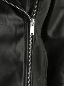 Couleur unieSimili cuirVeste de motardFermeture à boutons-pressionCol rabattuPoches latéralesRecouvertTissu lisseTissu lourdLégèrement doubléFermeture à glissière