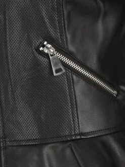 Couleur unieSimili cuirCol montantCoupe cintréePoches latérales avec fermeture éclairTissu lisseTissu robusteLégèrement doubléFermeture à glissière